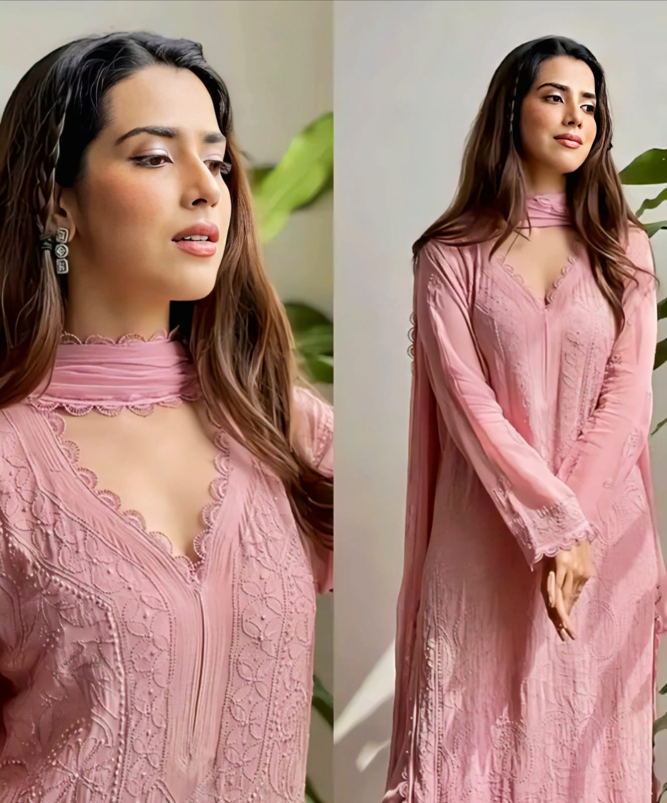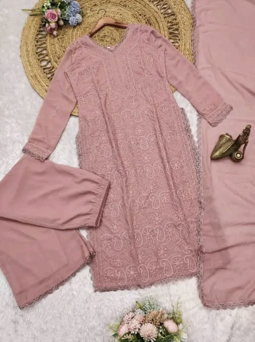 β¨ Georgette Heavy Embroidered Kurti Palazzo Dupatta Set β Chikankari Elegance